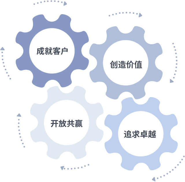 成就客户是一切决策的出发点,,,,创造价值是衡量所有工作的标准,,,追求卓越是尊龙凯时官网入口做事做人的态度,,,,开放共赢是尊龙凯时官网入口的格局也是最终的结果。。。。价值观的齿轮环环相扣,,推动着组织里的每个人不断向前。。